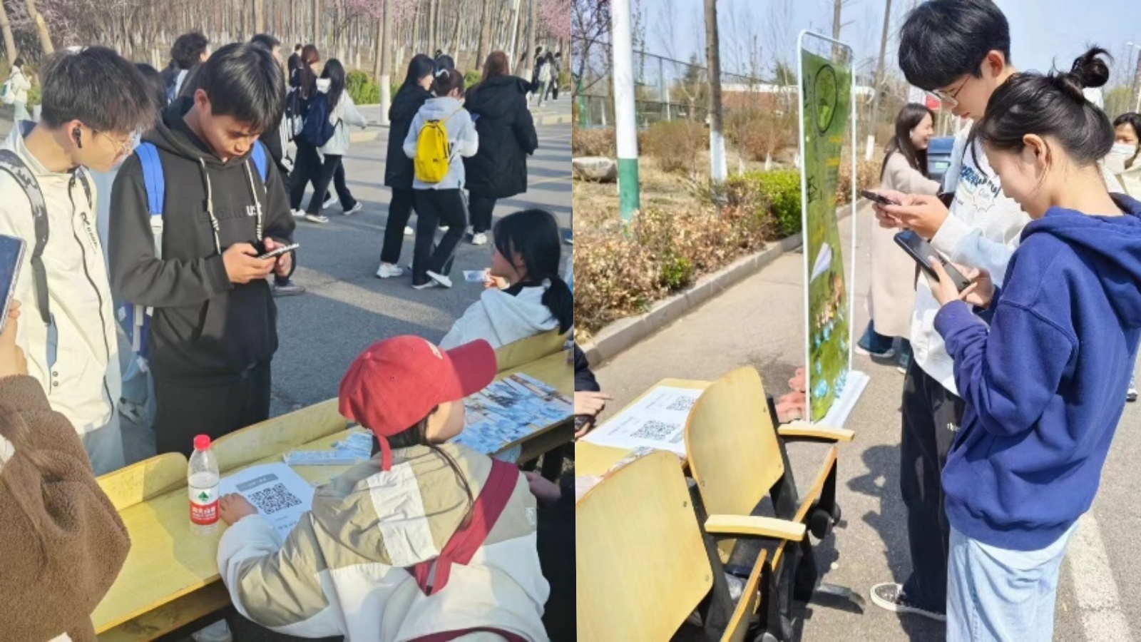 早上八点,社团成员们早早来到集合地点,开始为活动忙活起来。大家分工协作,一部分社员负责搬桌椅、布置现场、张贴海报等工作。另一部分社员则进行环保宣传,号召同学们共同书写环保知识小贴士,让更多的同学加入环保行动中来。另外,社团还举办了抽奖活动,参与者只需扫码上传自己拍摄的环保照片,就可以参与抽奖,大家的参与热情很高。