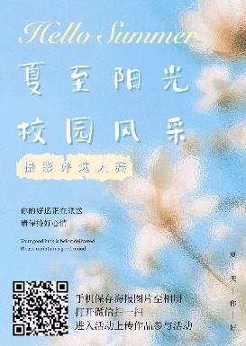 为展现我校全体学生的优良精神风貌和青春风采,丰富大学生的课余文化生活,营造大学生积极向上的文化氛围,促进大学生德智体美全面发展,特别举办本次:“夏至阳光,校园风采”摄影评选大赛,本次大赛为全体学生提供一个展现自我风采和交友的平台,都可以图片的形式进行报名,勇敢的“晒出自己"!
