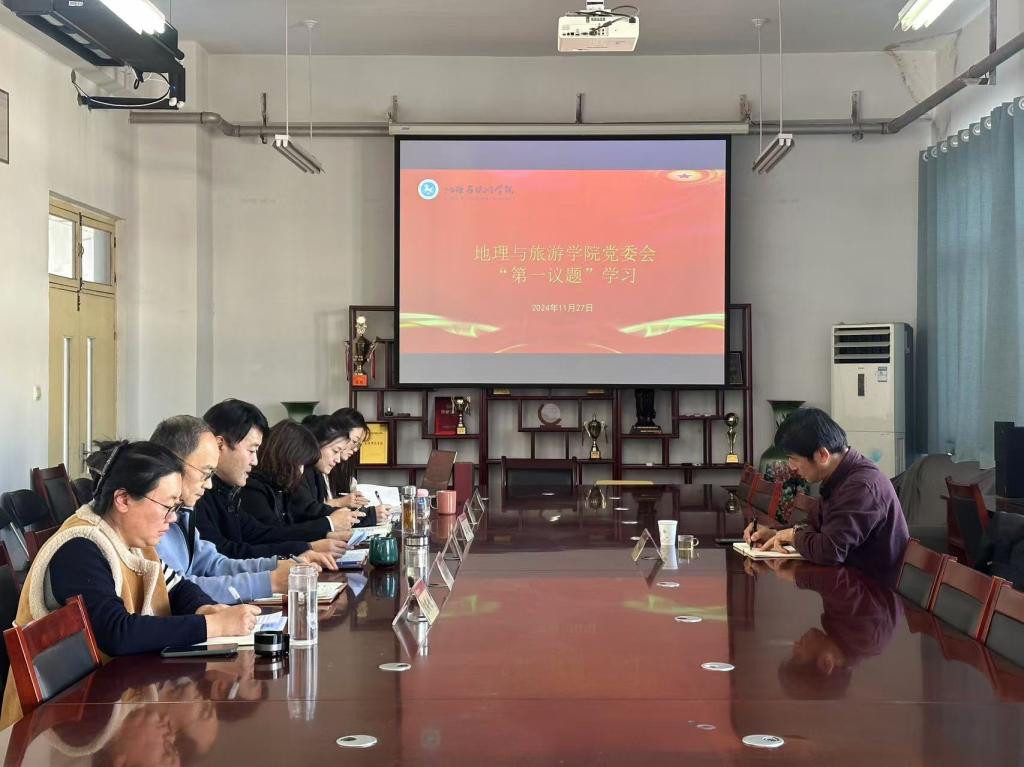 学院党委会首先进行“第一议题”学习。与会人员认真学习了二十届中共中央政治局第十七次集体学习精神——锚定建成文化强国战略目标,不断发展习近平文化思想,并观看了新闻视频。秦拓、王敏、王志勇、郭斐、宋高娃分别联系工作实际,交流了心得体会。秦拓总结道,在学科专业方面,我们肩负着挖掘、传承、创新文化内涵的使命,在今后的工作中,要进一步融入地方特色文化研究成果;在科研方面,我们要对标文化强国目标找发力点,聚焦传统文化的地理基因解读,为文化遗产保护利用提供地理视角科学支撑,提升学院科研与社会服务能力;在育人层面,我们要传递主流价值与人文精神,引导学生树立投身文化强国建设远大志向。