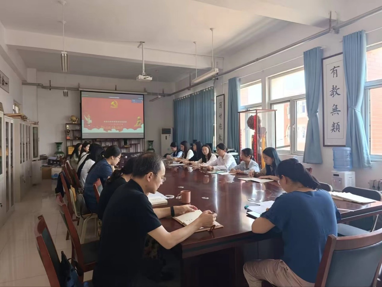 党支部书记宋高娃做总结发言,她首先向7名预备党员的顺利转正表示祝贺,并对他们的能力和成绩给予充分的肯定并寄予厚望,希望他们能积极发挥党员的先锋模范作用,不忘初心、牢记使命,为学校为社会做出贡献。