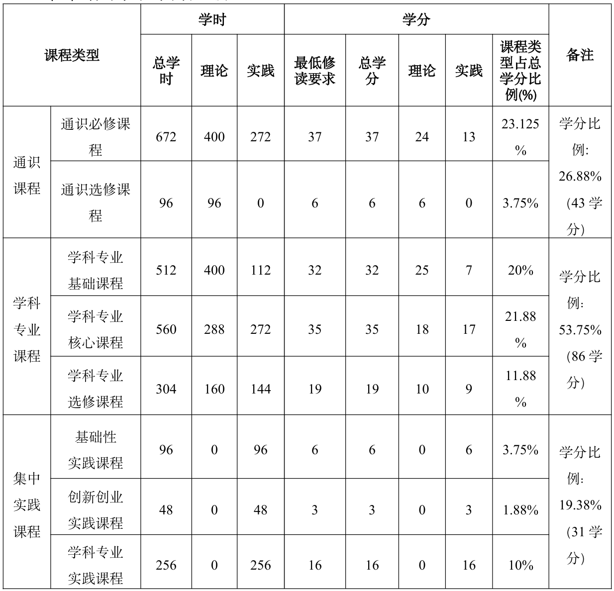 (三)各环节学时学分比例