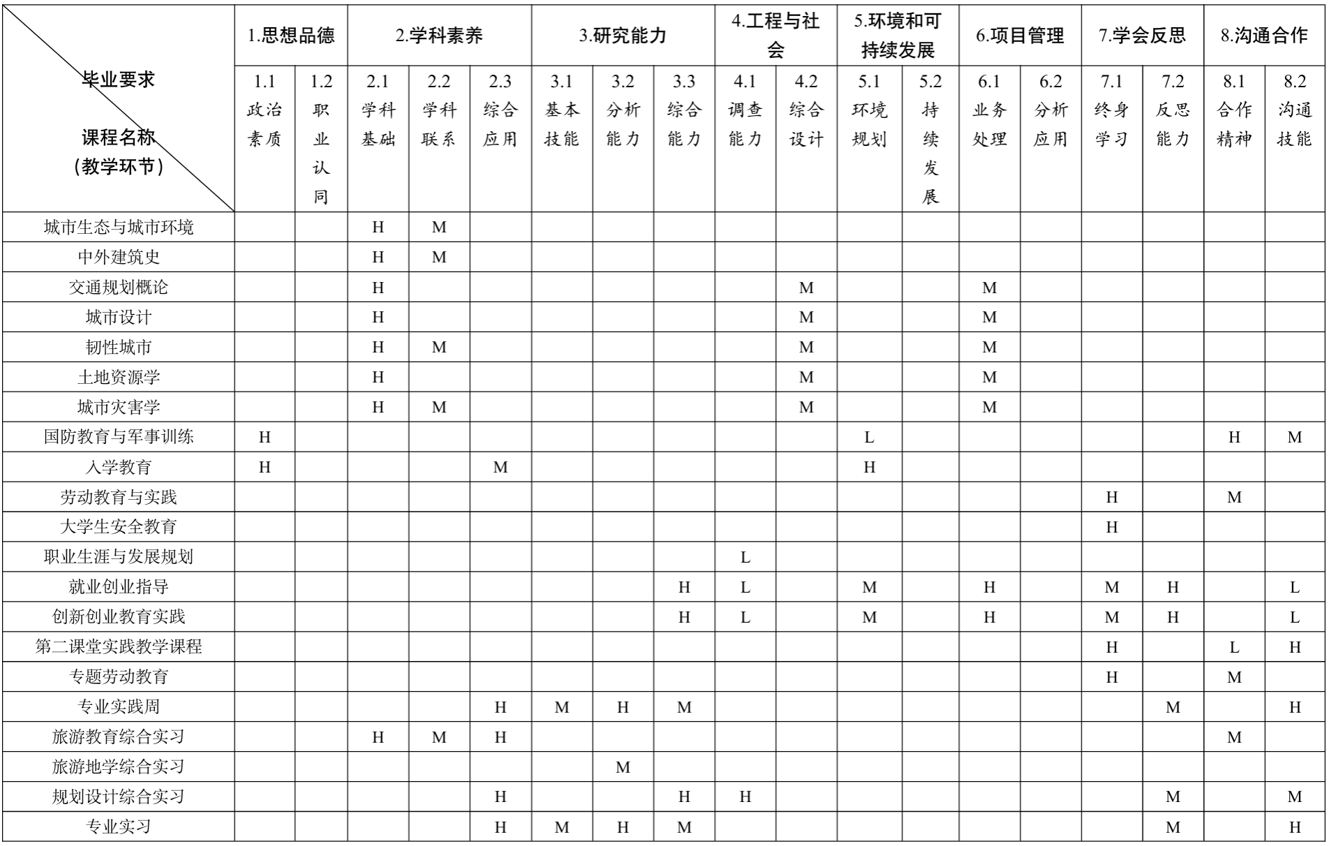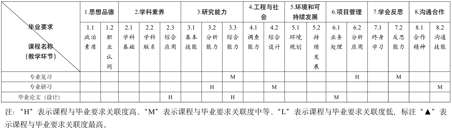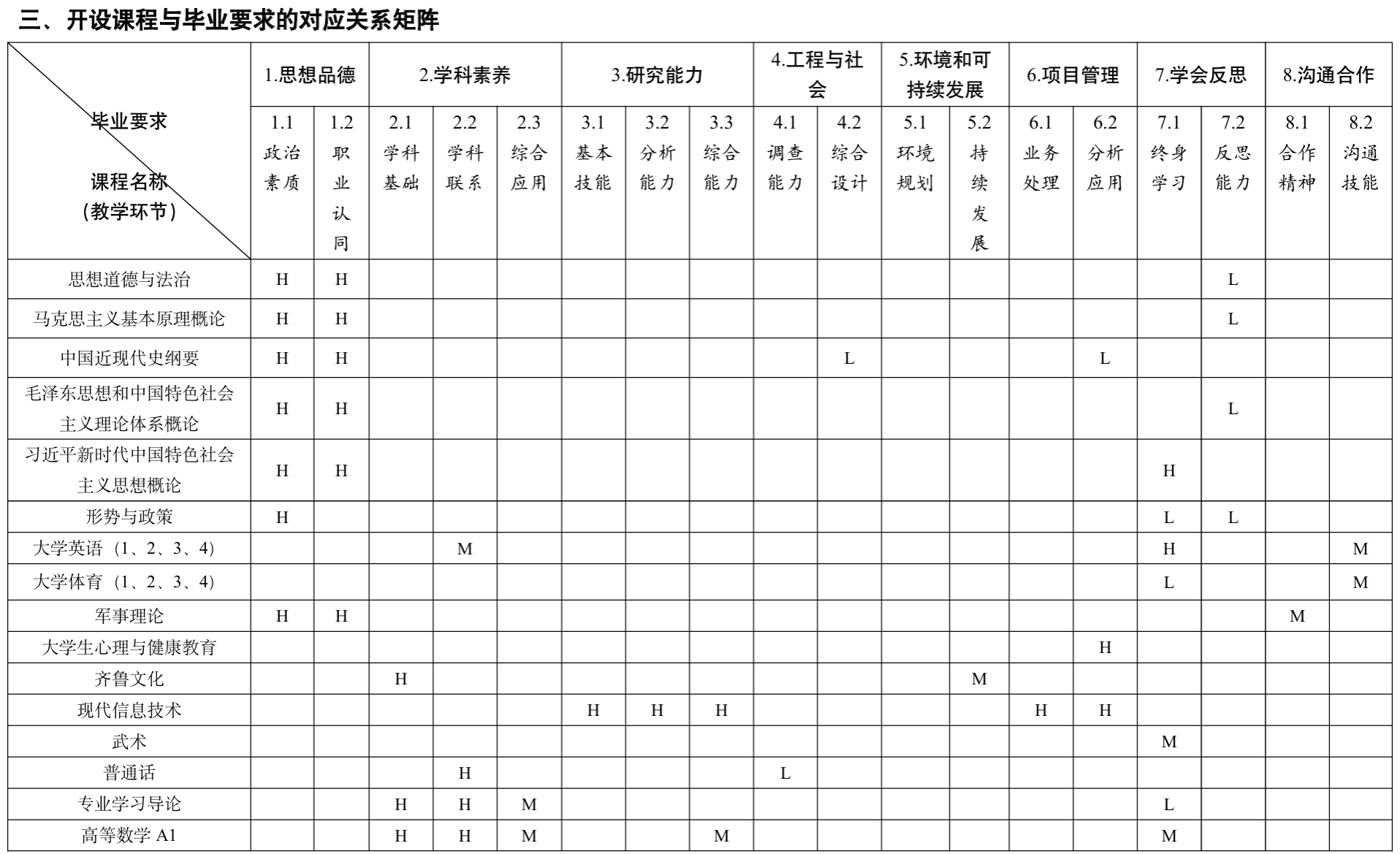 三、开设课程与毕业要求的对应关系矩阵
