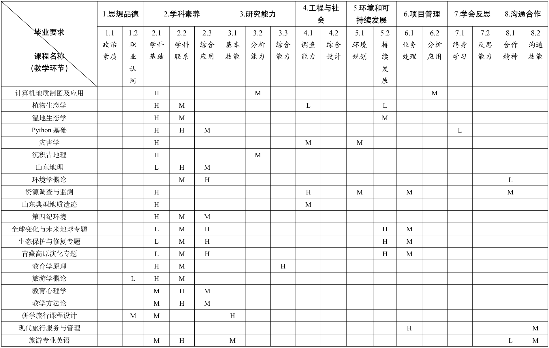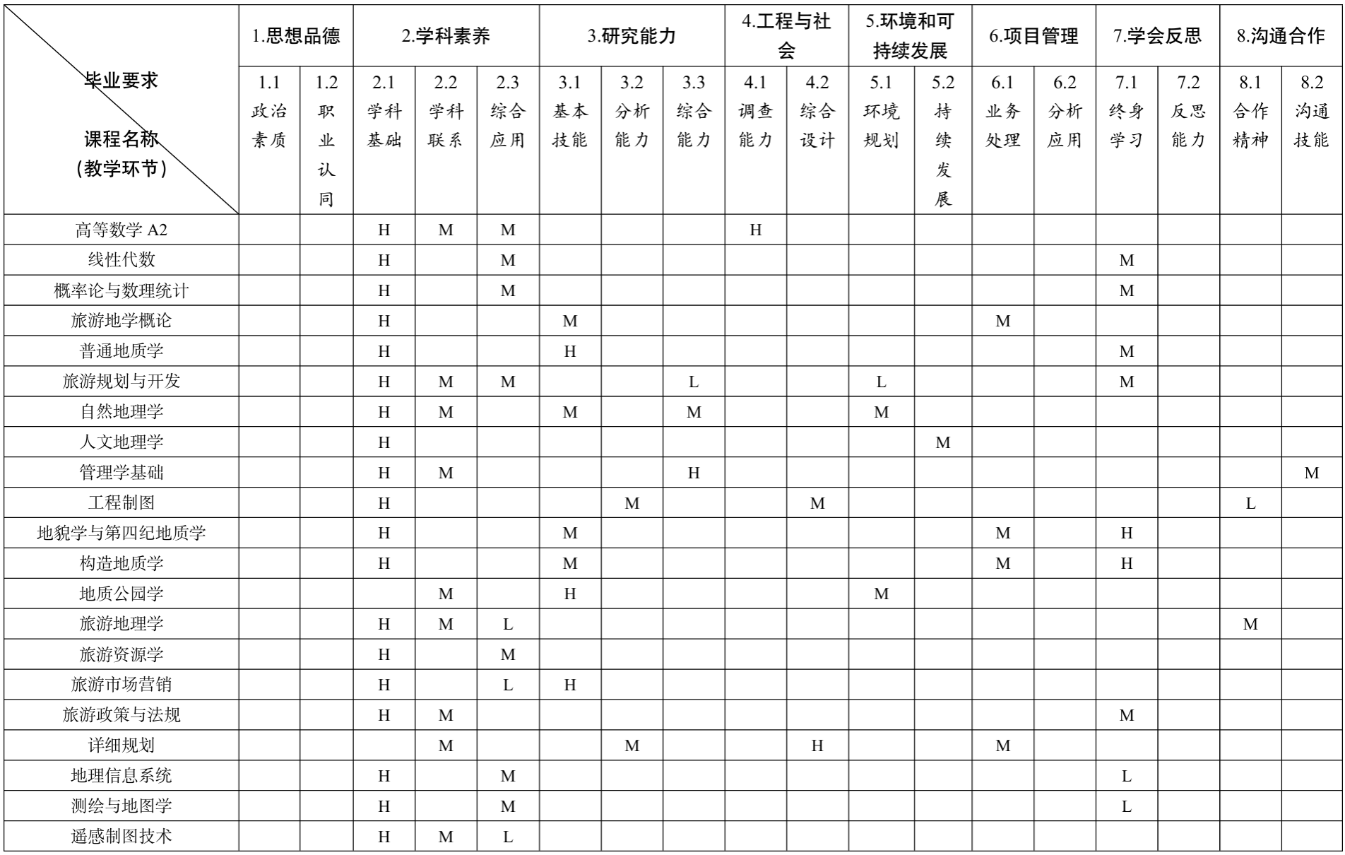 2.1 [学科基础] 掌握地质学、地理学、旅游管理和规划设计的专业知识,对专业问 题具有敏锐的观察力、准确的判断力、清晰的分析力和有效的执行力。
