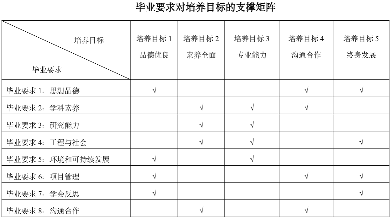 学生毕业后5年左右预期达成以下目标: