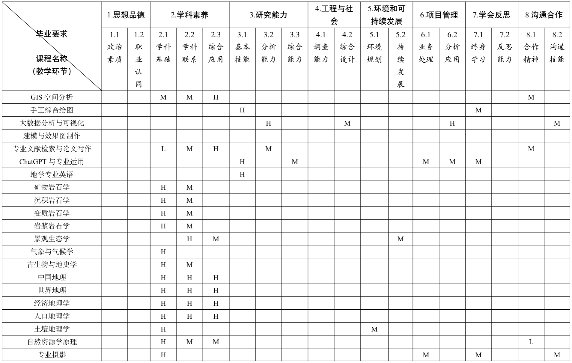 5.【终身发展】:具有终身学习意识和自主发展意识,不断提高专业素质;能够根 据旅游地学改革动态及时代发展需求,制定职业生涯规划和个人专业发展规划;具有反思能力和创新意识,能够运用批判性思维方法分析和解决旅游地学与规划中的实际问题。