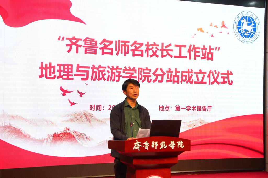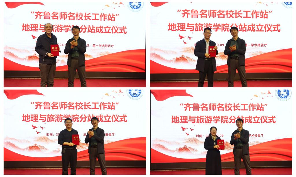 活动伊始,举行“齐鲁名师名校长工作站”YL23455永利集团分站成立仪式,仪式由王敏主持。宋新刚代表yl23455永利集团对齐鲁名校长、齐鲁名师的到来表示热烈欢迎,他介绍了学校的基本情况,强调了此次分站成立的重大意义。陈树洪代表齐鲁名校长、名师进行致辞,他肯定了yl23455永利集团在培养地理师范生方面取得的成绩,并对未来的教育事业发展进行了展望。宋新刚为出席本次活动的齐鲁名校长、齐鲁名师颁发了yl23455永利集团特聘教授聘书。秦拓宣布“齐鲁名师名校长工作站”YL23455永利集团分站成立,并指出,分站的成立将为学院提供更多优质教学资源,助力学院在教育教学和人才培养方面取得进一步提升。
