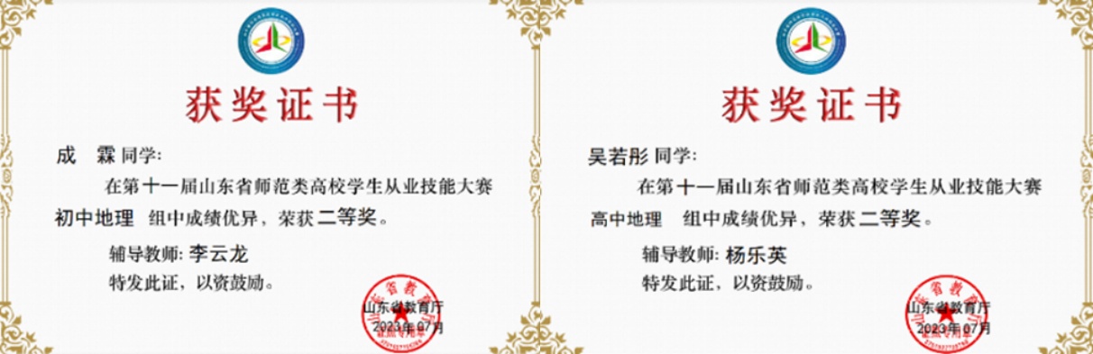 教师们积极参加各项教学比赛,逐步积累经验。李云龙老师获得2023年度校级青年教师比赛一等奖、2023年山东省青年教师教学比赛文科组三等奖,郝美彬、王春雨分别获校级青年教师比赛文科组二等奖、三等奖。