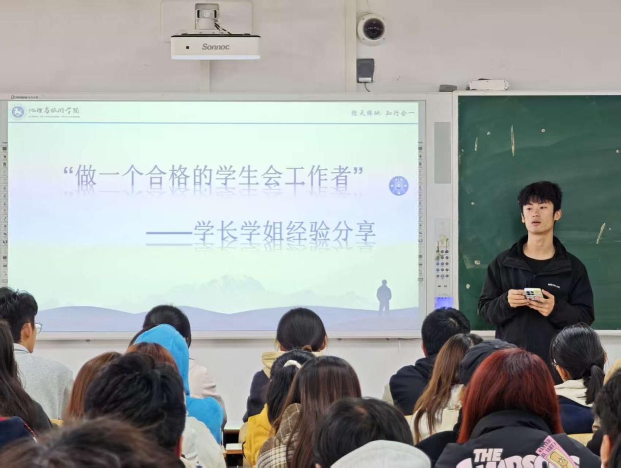 前学生会主席李恒哲、樊鑫雨、仇世豪作为骨干代表,结合过往工作实践分享经验。他们强调,做好学生会工作,既要在处理同学反馈时耐心倾听诉求、主动解决问题,在实践中积累经验、提升能力,杜绝“等靠要”思想;也要在对外对接学校后勤、教师及校外单位时,精准表达需求、认真倾听意见,有效规避“信息差”导致的工作失误,以高效沟通、务实行动保障各项工作落地见效。
