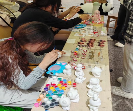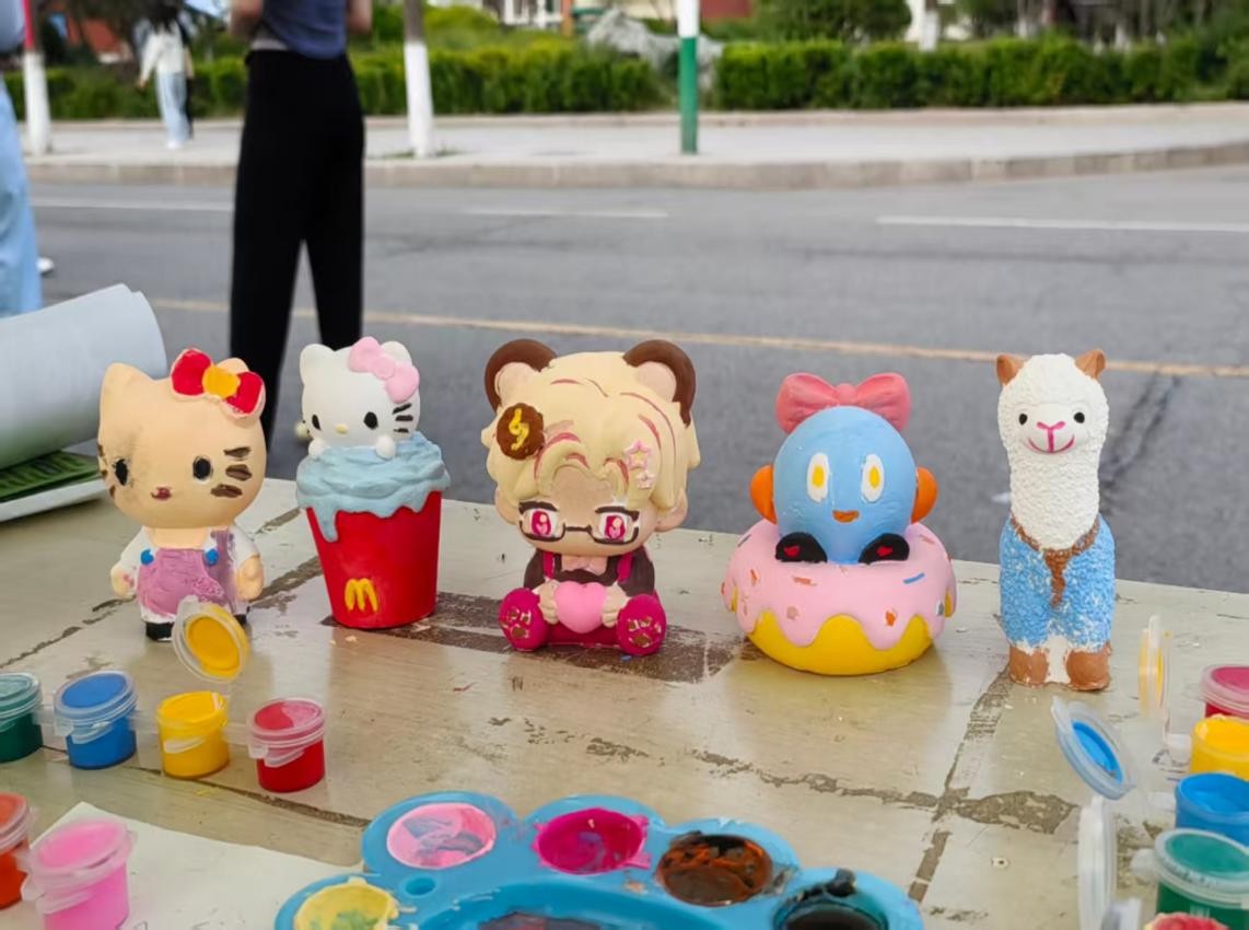 在二号教学楼下的道路旁,“环益家乡梦,童行共振兴”活动正如火如荼地开展。人潮涌动,同学们驻足摊位积极参与活动,贡献自己的爱心。现场气氛热烈非凡,大家积极参与其中,通过制作石膏娃娃与写明信片充分展现出对助力乡村发展这一公益事业的热忱。这场活动不仅搭建起大学生参与乡村振兴的桥梁,更以其高涨的人气和热烈的氛围,彰显出青年群体对公益事业的担当与热情,成为校园中一道亮丽且充满活力的风景线。