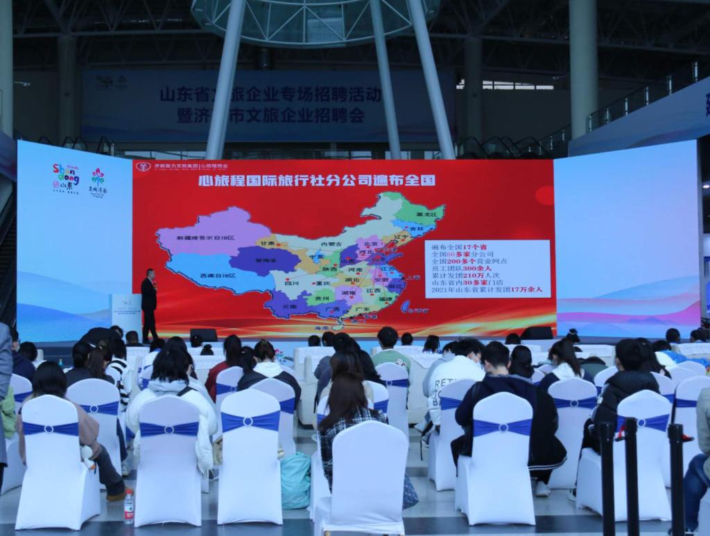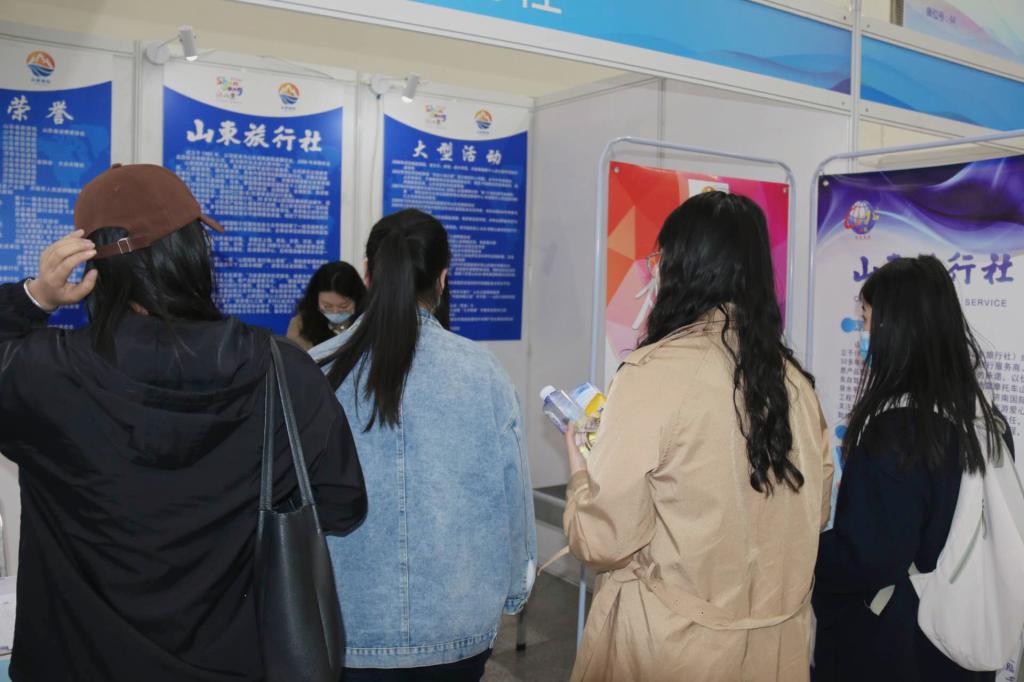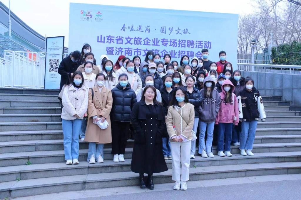山东省文化和旅游厅联合山东省人力资源和社会保障厅、山东省教育厅、济南市政府举办的山东省文旅企业专场招聘会,于2023年3月11日在舜耕国际会展中心进行。yl23455永利集团学生工作部副部长、就业指导中心主任万丽丽,YL23455永利集团辅导员徐媛媛带领YL23455永利集团60位旅游专业毕业生参加了此次招聘会。