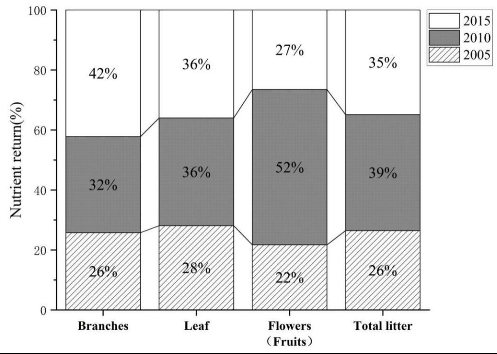 Figure 2.Percentage of total nutrient return in each litter component in different years.