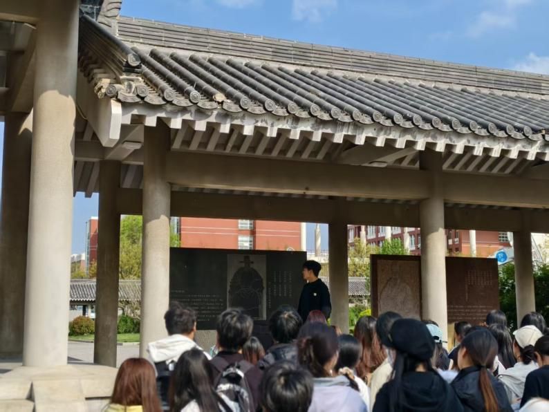 同学们环绕四周认真聆听讲解,驻足观察碑刻细节,认真记录关键信息。讲解人结合碑刻创作手法与文化价值,引导大家思考当代传承意义,鼓励同学们深入挖掘文化内涵,以语言传递文化温度。
