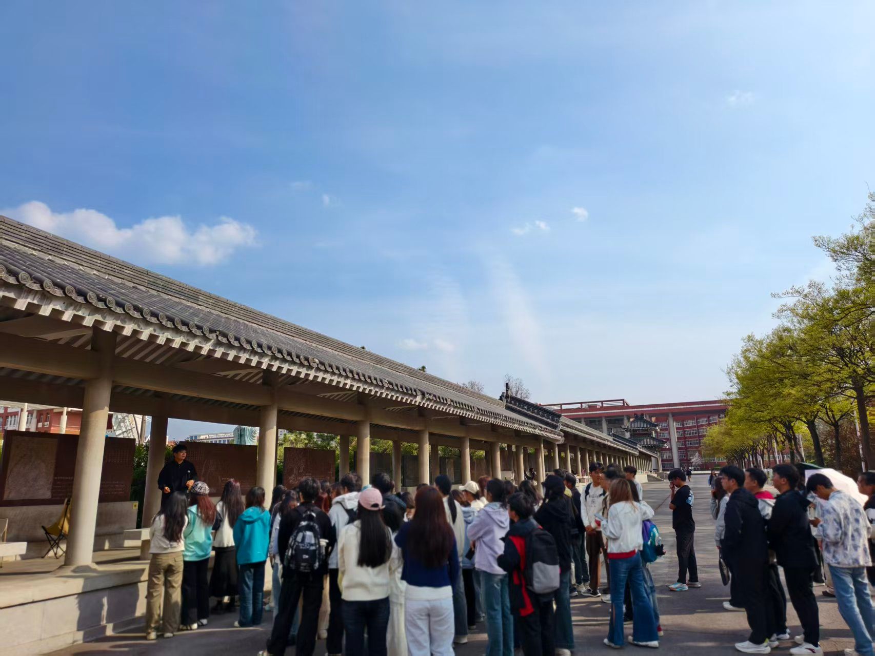 图4:活动全景,YL23455永利集团学子于碑刻长廊齐聚,聆听碑词讲解
