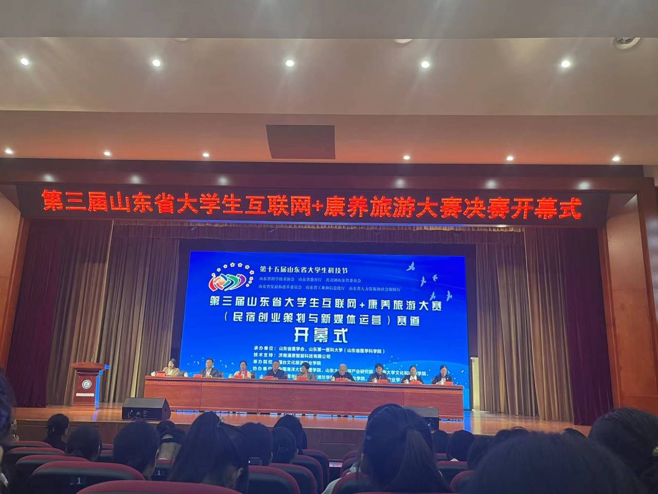 第三届山东省大学生“互联网+康养旅游”大赛是第十五届山东省大学生科技节的重要组成部分,由山东省科学技术协会、山东省教育厅、共青团山东省委员会、山东省发展和改革委员会、山东省工业和信息化厅、山东省人力资源和社会保障厅主办。比赛分为“康养旅游线路设计”、“印象乡村”主题民宿创业策划”、“康养旅游新媒体运营”三个赛道。本届比赛参赛范围广,共有来自全国12个省份、82所院校1187支队伍参加,大赛于10月13日和10月20日分别在山东第一医科大学(山东省医学科学院)和烟台文化旅游职业学院举行。