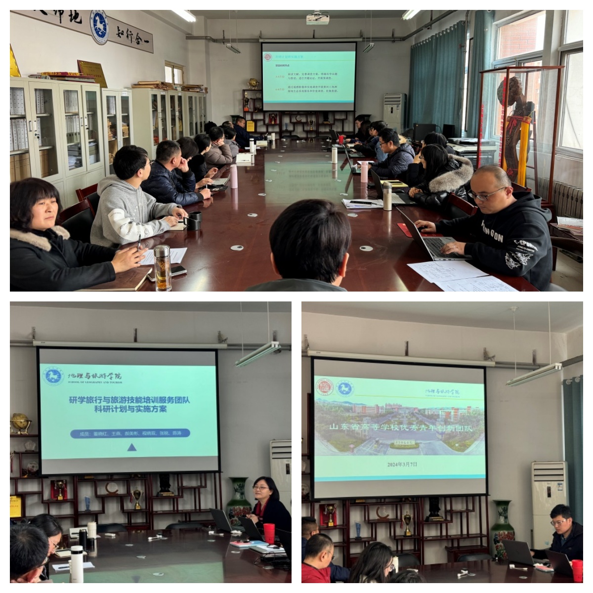 会上各团队负责人介绍了团队组成人员,并汇报了未来1-3年内团队的主要研究内容、任务目标和实施方案,与会人员围绕下一步工作进行了充分的讨论与交流。会议最终通过成立了7支科研团队,分别是黄河流域生态保护与绿色低碳发展研究创新团队、乡村振兴战略规划设计服务团队、地表环境遥感动态监测创新研究团队、研学旅行与旅游技能培训服务团队、地理学科教学研究团队、地质过程与地貌演化创新团队、地理信息集成与生态遥感研究团队。全体教师根据自己的专业特长和研究方向均进入团队,并明确了自己近三年的科研任务及社会服务内容。