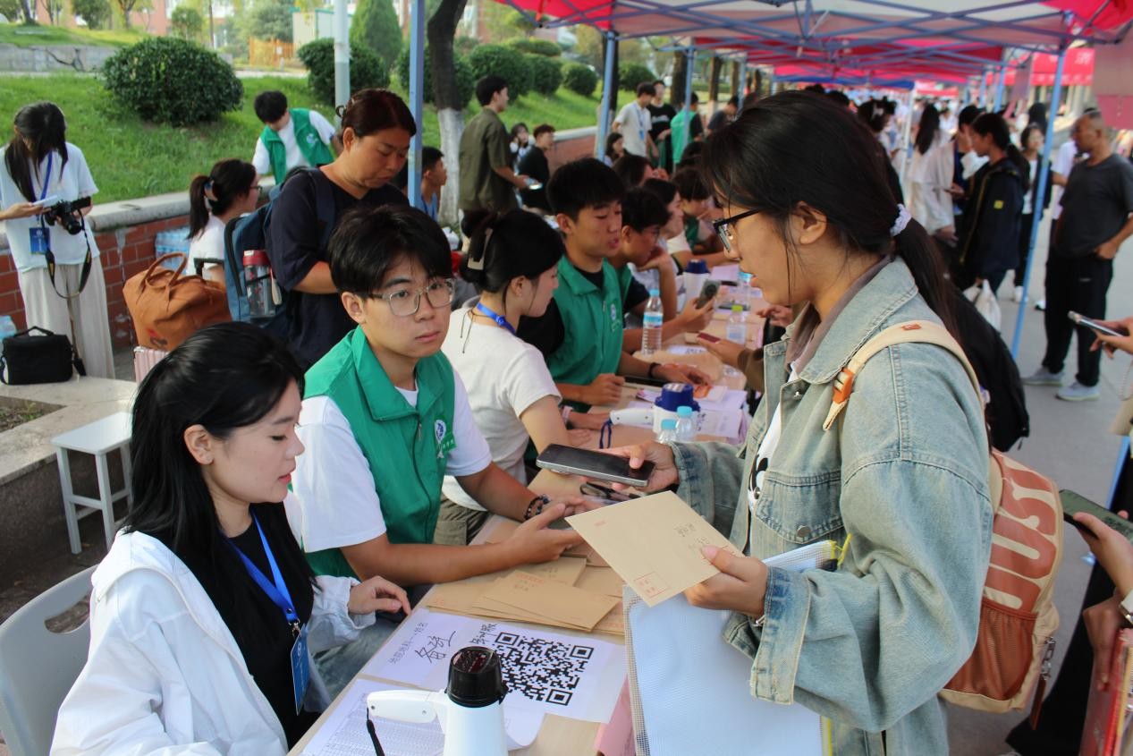 校门口,志愿者手持引导牌,暖心迎接每一位新生,第一时间为他们指引方向;迎新服务站前,班级助理分工明确,高效协助新生完成报到登记。