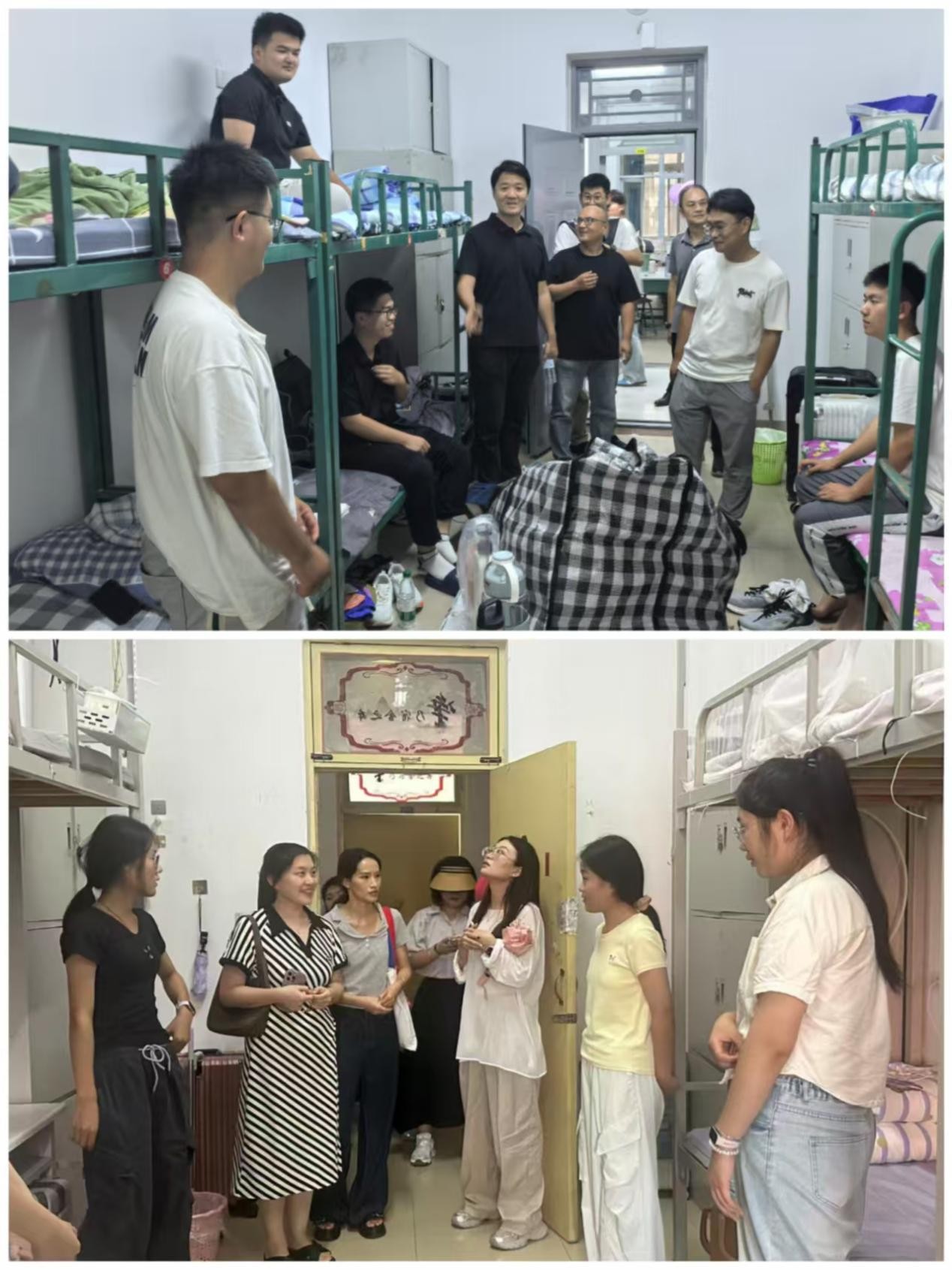 会后,学院班子成员、辅导员、班主任来到新生宿舍,深入了解新生入校后的适应情况及需求。