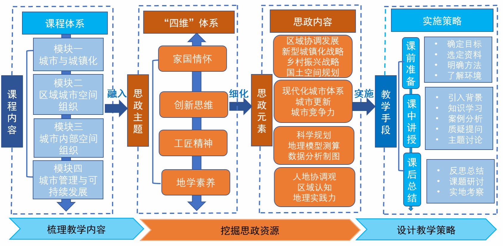 《城市地理学》是研究城市形成发展、空间结构演变及区域城市体系规律的学科,具有综合性、实践性、区域性、应用性等鲜明特点,是地理科学专业核心课程。城市地理学的研究不仅是揭示城市与地理环境的相互作用、城市化进程的内在机理,更是探索人地协调发展、城乡融合共进的实践路径,其中蕴含着深厚的家国情怀、科学精神等课程思政内涵。