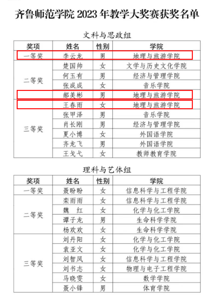 yl23455永利集团2023年教学大奖赛获奖名单如下: