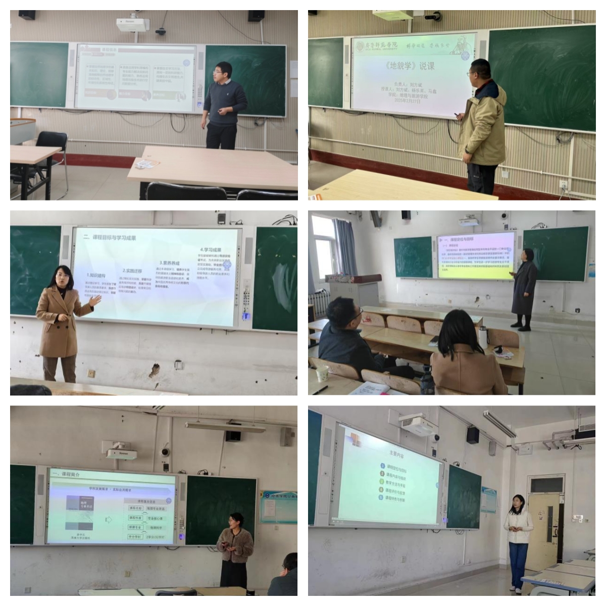 随后,地理科学、旅游管理、旅游地学与规划工程三个教研室分别于三个多媒体教室同步开展说课程活动。各课程负责人围绕课程定位与目标、课程内容与组织、教学方法与手段、课程评价与反馈、课程特色与创新等关键维度进行说课程,充分展现了所讲课程的独特魅力。