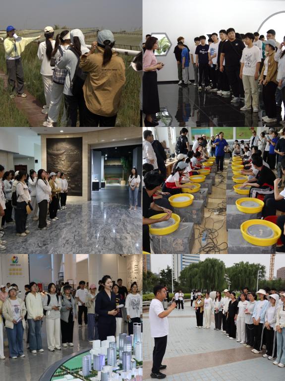 在黄河三角洲滨海湿地生态试验站与黄河口生态旅游区,学生通过观察珍稀鸟类、分析湿地生态服务功能,系统学习湿地生态系统的形成演化与服务功能价值,深化对生态保护的认知;在红杉书院、垦利博物馆、垦利文化馆及东王省级非遗泥陶工坊等地,学生近距离体验泥陶、纸刻等非遗技艺,追溯黄河文化脉络,探究地理环境与非遗传承的内在关联,感悟人地关系;在山东张夏-崮山地质公园,依托华北最完整的寒武纪地层剖面,学生开展了化石辨识、岩层测量等实践,将地质学抽象理论转化为具象认知;走进济南市规划展览馆,解析“山泉湖河城”一体化布局,探讨城市发展与生态保护的平衡路径;通过对泉城广场的区位分析与水文调查,进一步理解地理学在城市建设中的应用价值。