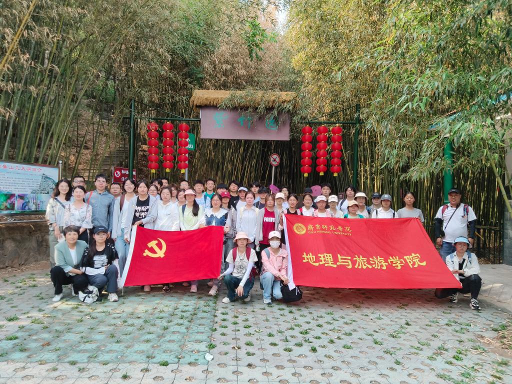 本次野外教学的课程主要包括《地貌学》《地质学基础》和《自然地理学》。上午全体师生来到天下第一石花洞--九天洞溶洞,结合溶洞里的景观,刘方斌老师为同学们深入讲解了《地貌学》中喀斯特地貌的形成、喀斯特作用的基本条件、地下喀斯特地貌的形态特征及其形成条件等内容。